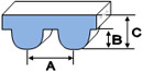 • Высота зуба (B) и высота всего ремня (С) имеют второстепенное значение при определении типа ремня и могут незначительно отличаться у разных производителей.